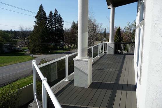 Decks degrade due to more or less the same reasons asphalt does here in the Inland Northwest. We have yearly periods of extreme heat in the summer, winters full of freeze/thaw cycles, and daily temperature swings in the spring and fall (on sun exposed surfaces) up to 80 degrees or more. This can literally spit the coatings off a deck in short order.